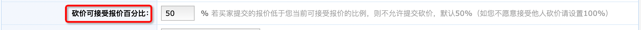 答: 在管理中心的“我是賣家-簽約設(shè)置”中,您可以設(shè)置可接受報(bào)價(jià)的百分比,默認(rèn)50%,如您不愿意接受他人砍價(jià)請?jiān)O(shè)置100%。